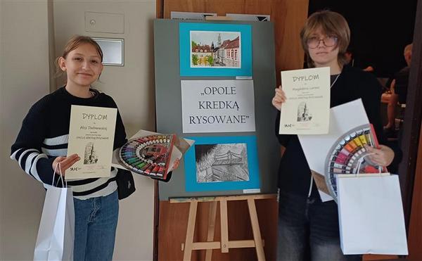 Z ogromna radością informujemy, że Alicja Czerenda z kl.6a, Agata Zięba z kl.7b wraz z Alicją Duchnowską i Magdaleną Lorenc z kl.8c zostały laureatkami pleneru plastycznego „Opole kredką rysowane”, który odbył się 7 października br. w opolskim śródmieściu.