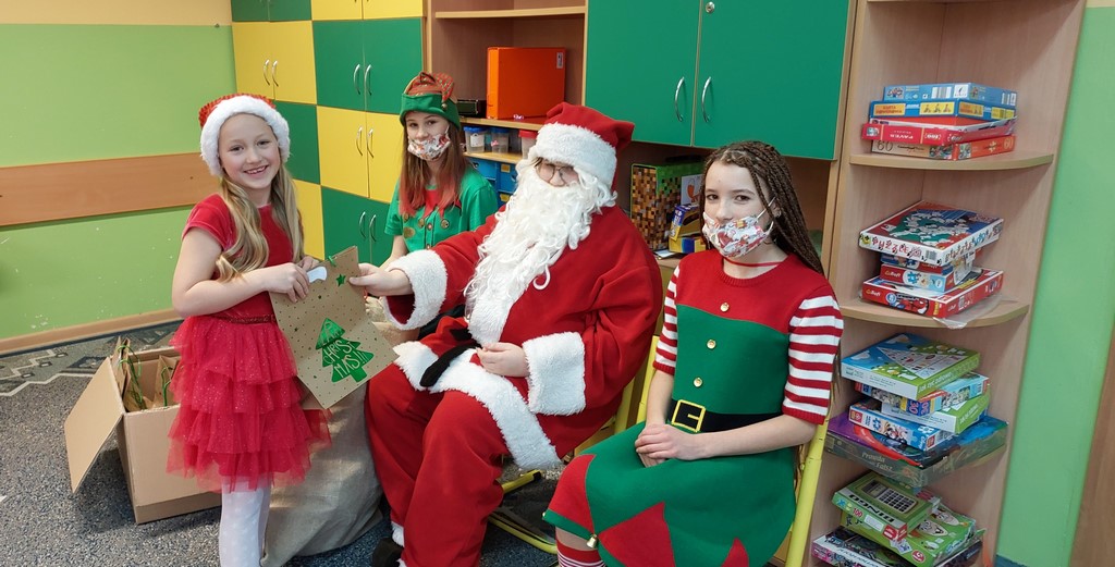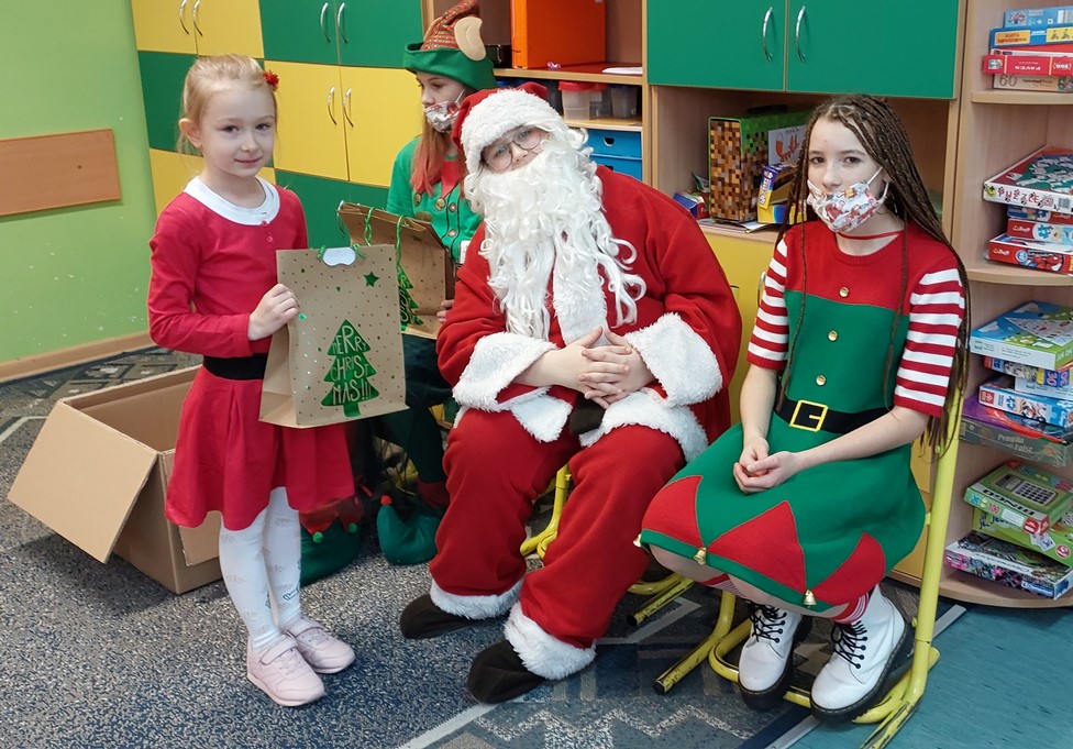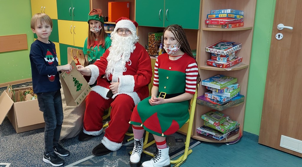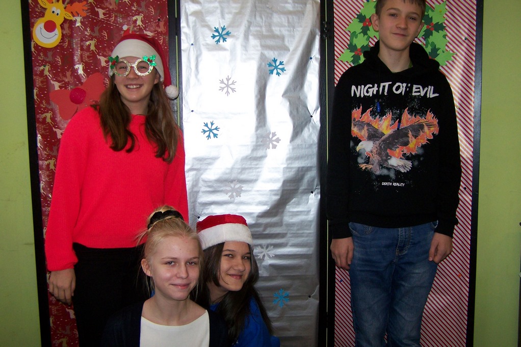 Przedświąteczny czas w naszej szkole obfitował w różne przyjemne zdarzenia. 6.12 odwiedził nas św. Mikołaj wraz ze swoimi pomocnikami. Każdy uczeń tego dnia otrzymał słodki upominek. Każda klasa miała również możliwość wykorzystać propozycje SU, które były przygotowane specjalnie dla nich. Najmłodsi uczniowie mogli poczuć klimat świąt dzięki pięknym bajkom czytanym przez starszych uczniów, klasy czwarte uczestniczyły w turnieju sportowym, dla klas piątych przygotowaliśmy wypożyczalnię gier planszowych, klasy szóste wzięły udział w konkursie na najdłuższy łańcuch choinkowy – serdecznie gratulujemy zwycięzcom tego konkursu- klasie 6c! Klasy siódme otrzymały możliwość wykorzystania kopert z zabawnymi zadaniami, zaś klasy ósme wykonały zabawne zdjęcia w świątecznej fotobudce.