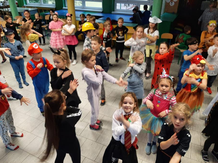 26.01.2023 odbył się bal karnawałowy w świetlicy szkolnej. Dzieci i Panie wystąpiły w ciekawych, kolorowych kostiumach, przebrane za bohaterów znanych bajek i nie tylko. Nie sposób zliczyć i wymienić tych wszystkich postaci. Wszyscy uczniowie bawili się znakomicie przy rytmach różnorodnej muzyki, jak przystało na prawdziwy bal. Były pociągi, korowody, kółeczka i tańce w parach. Punktem kulminacyjnym zabawy karnawałowej był wybór króla i królowej balu, którymi zostali Kuba i Ala – uczniowie klas II B i IB. Kiedy czas zabawy dobiegł końca dzieci z żalem opuszczały salę balową. Bal umożliwił dzieciom i wychowawcom spędzenie czasu w miłej atmosferze,a wspólna zabawa przyniosła wiele radości. Dziękujemy dzieciom i rodzicom za zaangażowanie w przygotowanie pięknych balowych strojów.