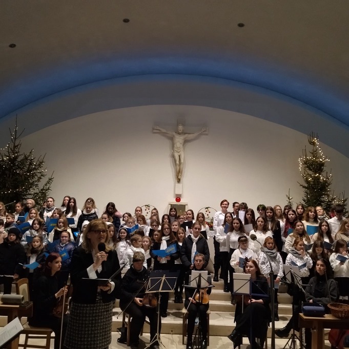 Po dwóch latach przerwy spowodowanej pandemią powróciło ważne wydarzenie w działalności chórów szkolnych Opolszczyzny. 21 stycznia odbył się XVI koncert kolędowy „W kole kolędujmy”. Wzięły w nim udział również dziewczynki z naszego szkolnego chóru „Akolada”. Koncert odbył się w kościele pw. Św. Karola Boromeusza na Chabrach i połączony był z obchodami Dnia Babci. Kolędy i pieśni świąteczne zabrzmiały w wykonaniu połączonych chórów szkół opolskich, zespołu fletów prostych oraz zespołu instrumentalnego. Cieszymy się, że znowu mogliśmy wystąpić na takim koncercie.