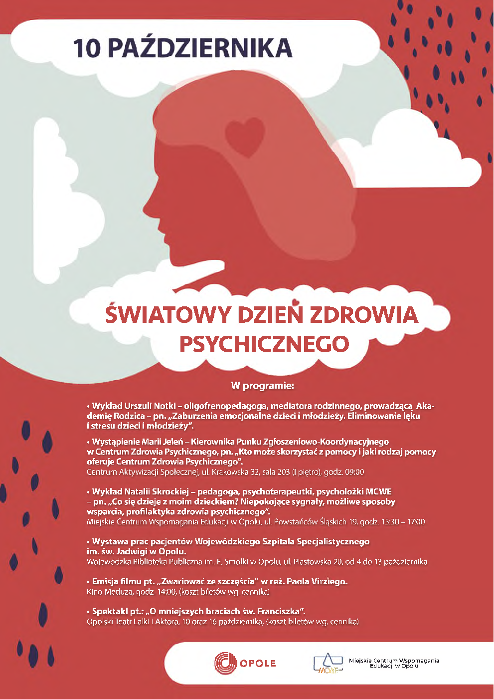 10 października obchodzony jest Światowy Dzień Zdrowia Psychicznego. Wydział Polityki Społecznej przygotował na ten dzień Program z ciekawymi wydarzeniami dotyczącymi tego ważnego tematu jakim jest zdrowie psychiczne.