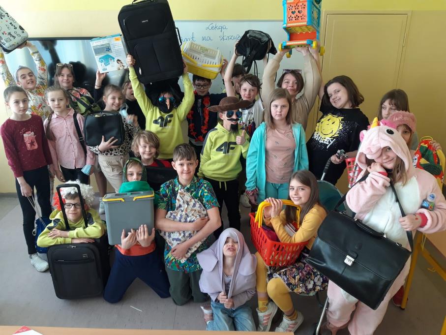 Z okazji pierwszego dnia wiosny samorząd uczniowski ogłosił „Dzień bez plecaka” w naszej szkole. Nasi uczniowie zaskoczyli kreatywnością i niebanalnym podejściem do tego zadania. Komisji konkursowej najbardziej spodobał się pomysł Kaliny i Bartka, którzy swoje podręczniki i przybory przynieśli do szkoły w dmuchanym pontonie. Gratulujemy zwycięstwa! Tego dnia wybraliśmy również najbardziej kolorową klasę – 1c. Również serdecznie gratulujemy! Zwycięska klasa w nagrodę wybierze się na lody.