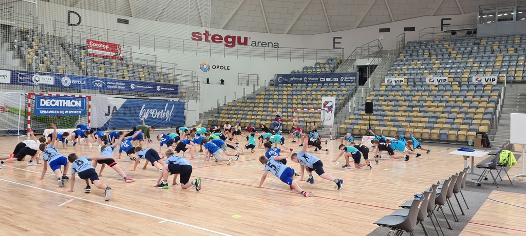 Na uczestników czekało mnóstwo atrakcji i niespodzianek. Na pierwszą zaproszono nas zaraz po rozpoczęciu turnieju – była to wspólna rozgrzewka dla wszystkich uczestników prowadzona przez profesjonalnego trenera. Następnie zostały rozegrane spotkania. Uczniowie grali na mniejszych boiskach piłką piankową. Wszystkie spotkania były sędziowane przez sędziów zawodowych z PZPR. W trakcie przerwy odwiedził nas trener KPR Gwardii Opole pan Rafał Kuptel (dwukrotnie wybrany najlepszym szkoleniowcem PGNiG Superligi), który chętnie rozdawał autografy, pozował do zdjęć oraz rozmawiał z młodymi zawodnikami.