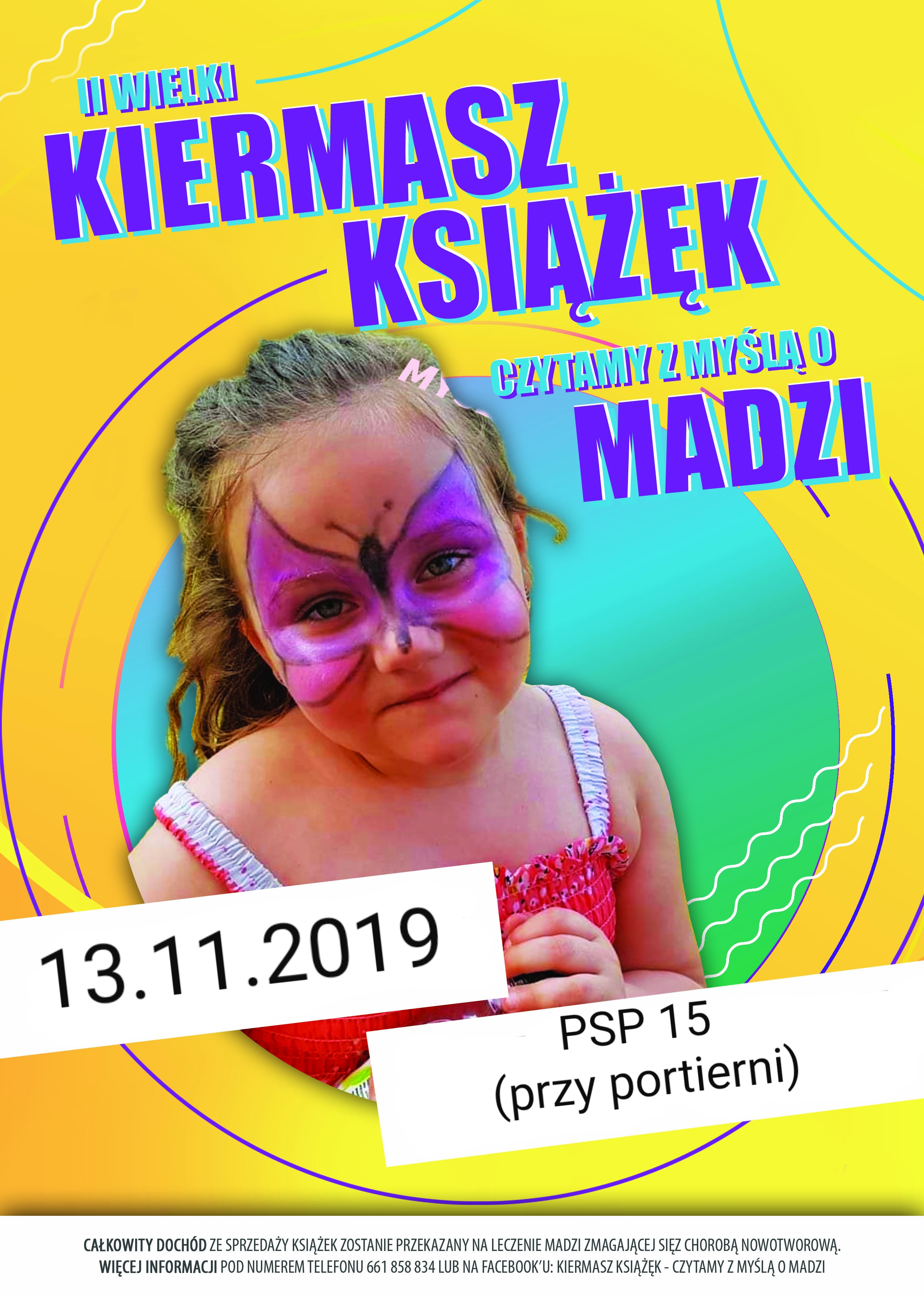 serdecznie zapraszamy na "Wielki Kiermasz Książek - czytamy z myślą o Madzi", który odbędzie się w naszej szkole13 listopada (lokalizacja: wejście główne, w godz. 8.00-18.00). Całkowity dochód uzyskany ze sprzedaży książek zostanie przekazany na leczenie 6-letniej Madzi, mieszkanki Kietrza, która zmaga się z nawrotem choroby nowotworowej. Państwa obecność, zarówno w tym dniu, jak i aktualnie - podczas zbierania książek, to doskonały przykład tego, że warto być dobrym, warto pomagać. Za wszelkie dobro - dziękujemy!