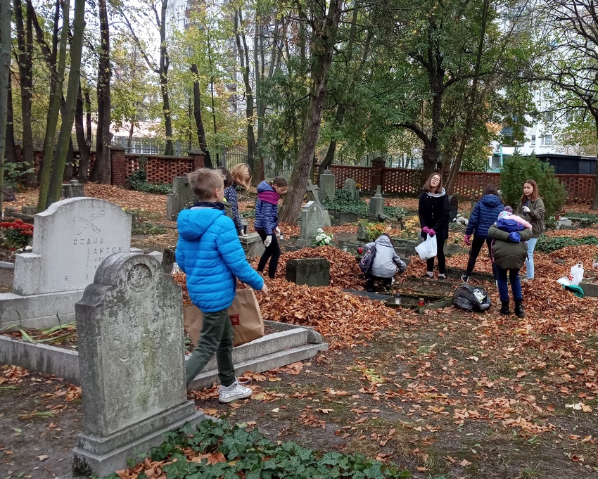 29 października, przed dniem Wszystkich Świętych, klasa 5d po raz kolejny odwiedziła pobliski cmentarz, aby zapalić znicze na grobach, których już nikt nie odwiedza: starych, opuszczonych, zapomnianych. Uczniowie wspaniale się przygotowali do porządkowania mogił oraz do zapalenia symbolicznego światełka. Pełni wzruszeń oraz refleksji nad przemijaniem „odkrywali” niektóre groby, przykryte jesiennymi liśćmi.