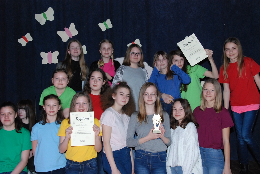 W piątek 29 marca chór szkolny uczestniczył w Międzyszkolnym Festiwalu Piosenki Wiosennej i Dowolnej organizowanym, jak co roku, przez PSP nr 5 w Opolu. Oprócz prezentacji chóru zaprezentował się duet Katarzyna Jędrzejewska i Małgorzata Łuczka z kl. 8a oraz solistka Paulina Głogiewicz z kl. 5b. Wszystkie występy zostały ocenione przez jury na I miejsce. Oprócz I miejsca chór i solistka zdobyli nagrodę dodatkową za najlepsze wykonanie ufundowaną przez stowarzyszenie „Opolszczyzna śpiewa”. Gratulujemy sukcesów!