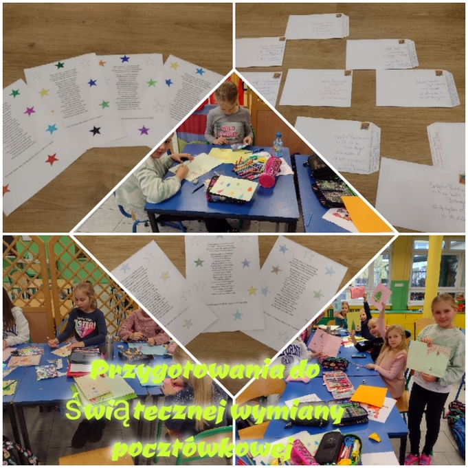 Grudzień to szczególny miesiąc. W tym czasie przygotowujemy się do świąt, porządkujemy swoje domy, ubieramy choinkę i kupujemy dla bliskich prezenty. Oprócz tego składamy sobie i innym osobom życzenia. W ramach wymiany pocztówkowej w świetlicy odbyła się akcja pt. “Świąteczna Wymiana Pocztówkowa”, którą koordynowała i nadzorowała pani Aleksandra Kasperska. Nauczyliśmy się jak poprawnie złożyć życzenia, a także przygotowywaliśmy szereg kartek, które powędrowały do innych szkół w całej Polsce. Dziękujemy za przesłane kartki.