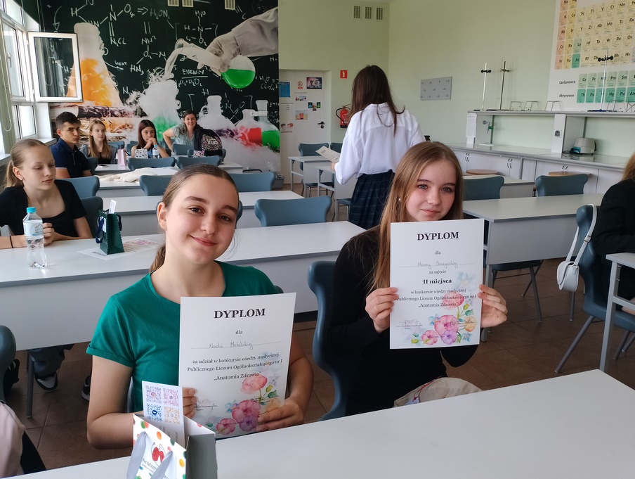 W dniu 21.05. w PLO nr 1 w Opolu odbyła się 1 edycja konkursu wiedzy medycznej dla uczniów szkół podstawowych miasta Opola "Anatomia zdrowia". Naszą szkołę reprezentowały Hania z klasy 8b, Nadia z klasy 8c, Amelia z klasy 7b, Lena i Wiktoria z klasy 7a. Miło nam poinformować, że Hania Soczyńska z klasy 8b zajęła 2 miejsce w konkursie. Na zakończenie odbyły się spektakularne doświadczenia chemiczne, w których braliśmy udział.